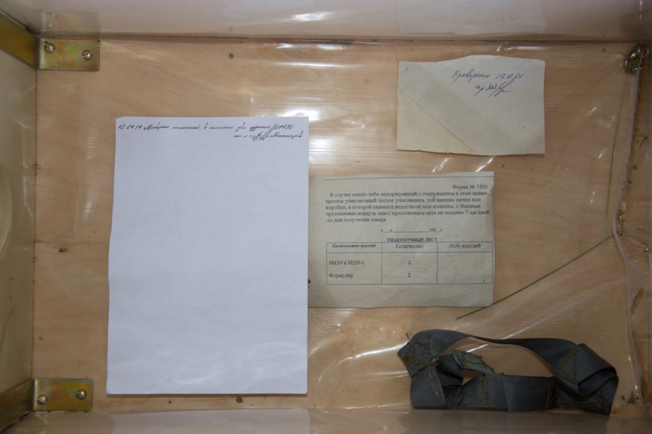 В подтверждение этого публикуются фотографии с ящиком ПЗРК «Игла», а в ящике еще и упаковочный лист, рассказывающий всю историю оружия аж с 2001 году. Вот так удача!