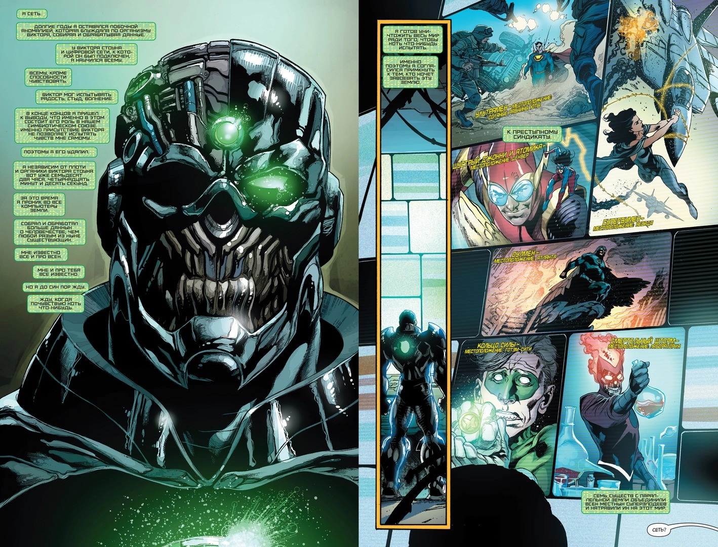 Фундаментальная «Война Троицы», напомним, завершилась вторжением на нашу (условно говоря) Землю Преступного Синдиката. Покинув свою параллельную — и ныне уничтоженную — Землю, Ультрамен, Супервумен, Оулмен, Кольцо Силы, Смертельный Шторм, Шустрый Джонни и Атомика, а также бывший Киборг, освободившийся от тела Виктора Стоуна и назвавший себя Сетью, объединили всех местных суперзлодеев, одержали «верх над армиями всего мира, которые больше не могли действовать согласованно», и избавились от Лиги Справедливости, которая «сгинула», будучи затянутой «внутрь матрицы Огненного Шторма». Теперь они здесь — безраздельные хозяева.