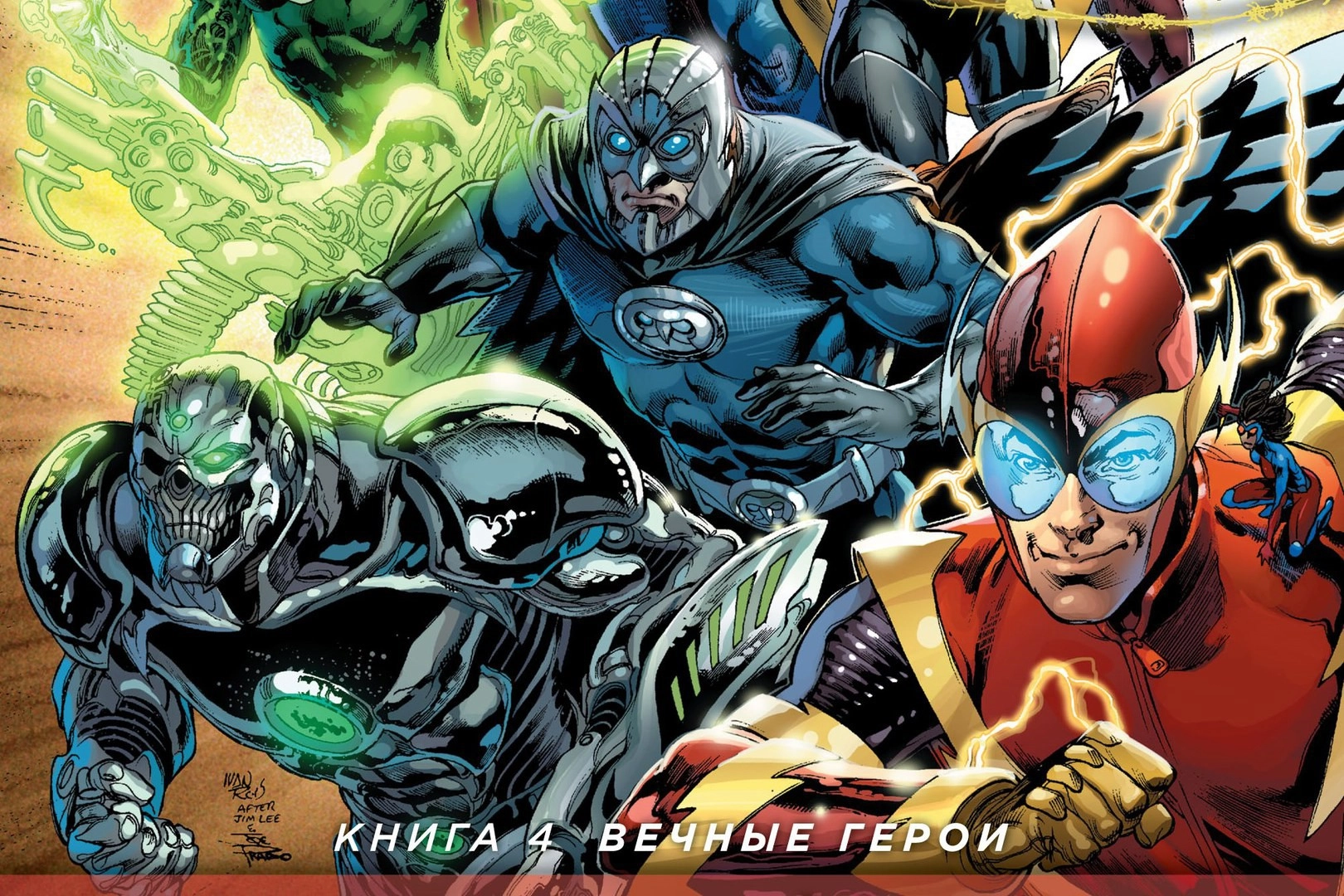 На корешке новой «Лиги Справедливости» Джеффа Джонса стоит цифра «4», что может запутать не только стороннего читателя, но и коллекционера. На самом деле «Вечные герои» — прямое продолжение лишённой собственного номера «Войны Троицы», сильно перекликающееся со следующим кроссовером — «Вечное зло».
