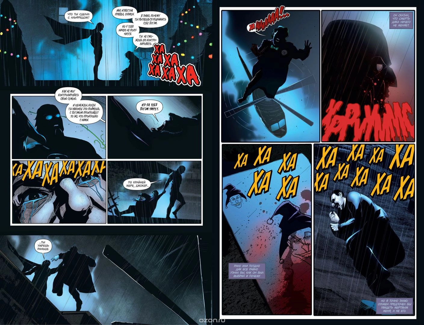 В их мире — в мире, «где солнце заходит на востоке» — «раковой опухолью нашего города» также был не кто иной, как Джокер, который «хотел, чтобы мы считали его абсолютно чокнутым. Непредсказуемым. Хотя дело обстояло с точностью до наоборот». Именно — наоборот! «Столько жизней… Столько человеческих жизней уже оборвалось», — сокрушается тот, кого мы привыкли считать отъявленным маньяком, но здесь он из чистых благородных побуждений «хотел освободить людей из-под власти Оулмена», поплатившись за это собственной жизнью.