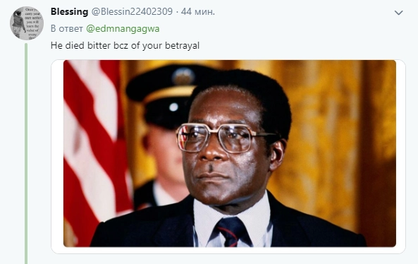 Сторонники экс-президента, напротив, проклинают самого Эммерсона Мнангагвау: «Он умер из-за вашего предательства!»