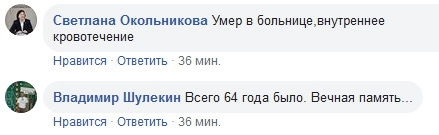 «Алексей Иванович Лебедь ушел. Вечная память!» — написал Кириченко на своей странице в Facebook.