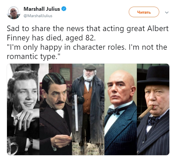 В возрасте 82 лет скончался выдающийся британский актер Альберт Финни, сообщает Би-би-си.