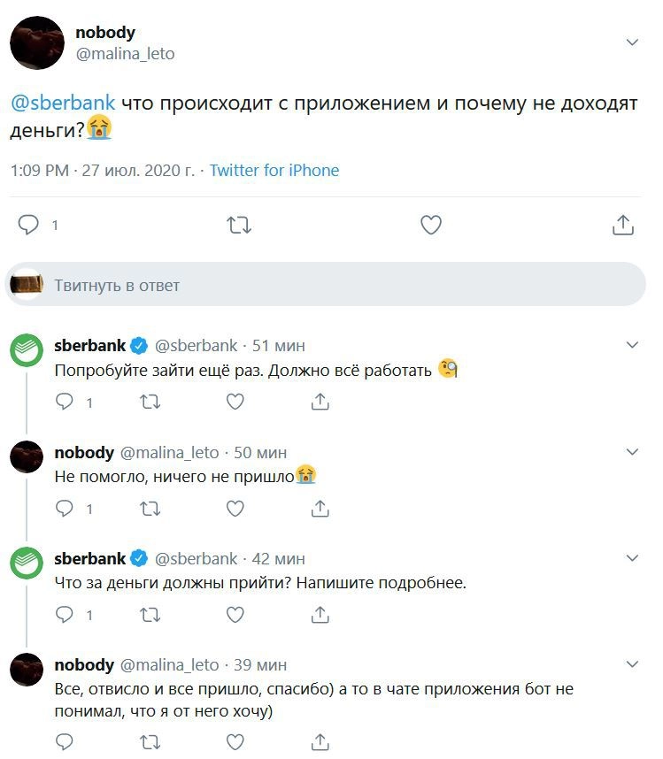 За несколько месяцев до этого произошел сбой устройств самообслуживания Сбербанка и в работе мобильного сервиса «Сбербанк Онлайн». Вскоре в официальном «Твиттере» кредитной организации заявили, что все проблемы устранены, а также принесли свои извинения клиентам.