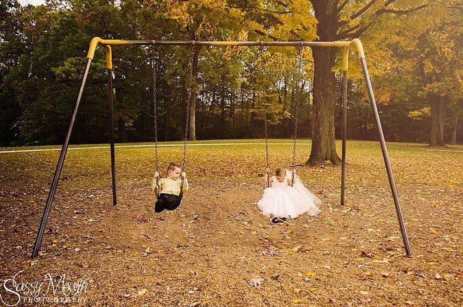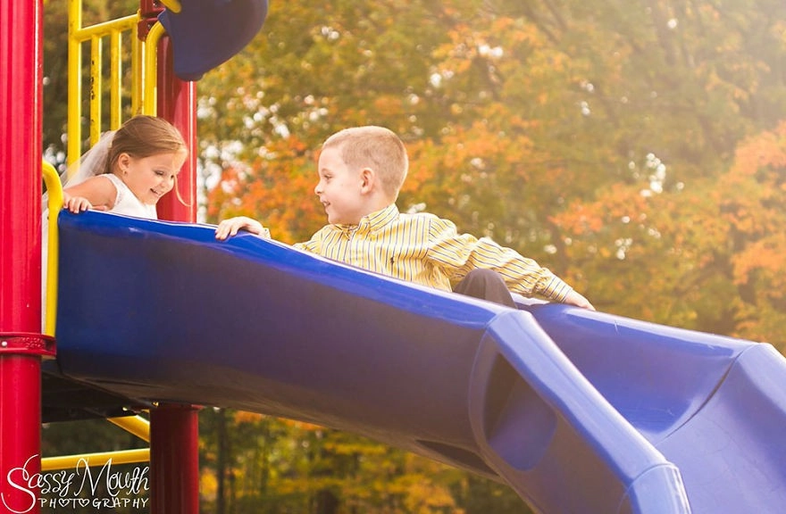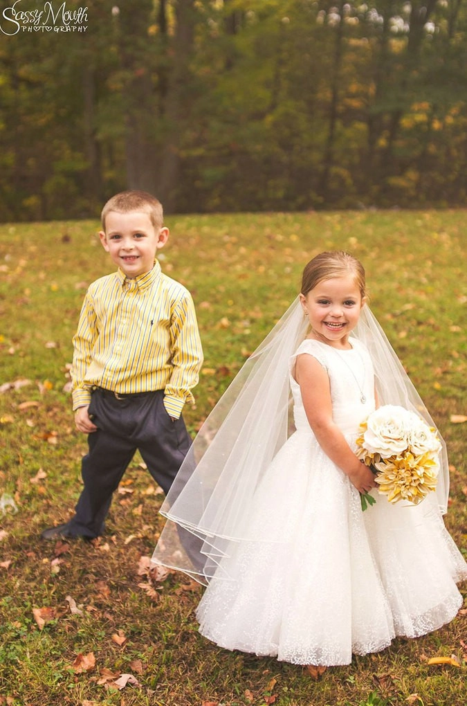 Очаровательные свадебные фотографии маленькой влюблённой пары Софии и Хантера были сделаны в местном парке.