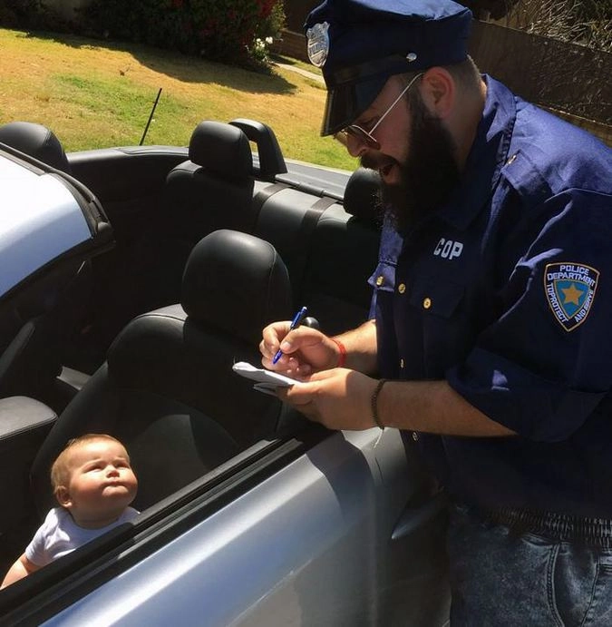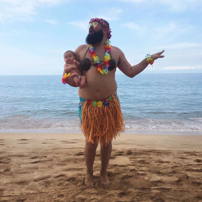 Папа тщательно продумывает идею для фото, используя поручные средства и специальные костюмы для воссоздания фантастической сцены. Девятимесячная Зои уже была гавайской танцовщицей, охотницей на сафари и даже автонарушителем. Снимает забавную парочку мама девочки — 32-летняя Карли (Carli), которая целиком и полностью поддерживает увлечение мужа.