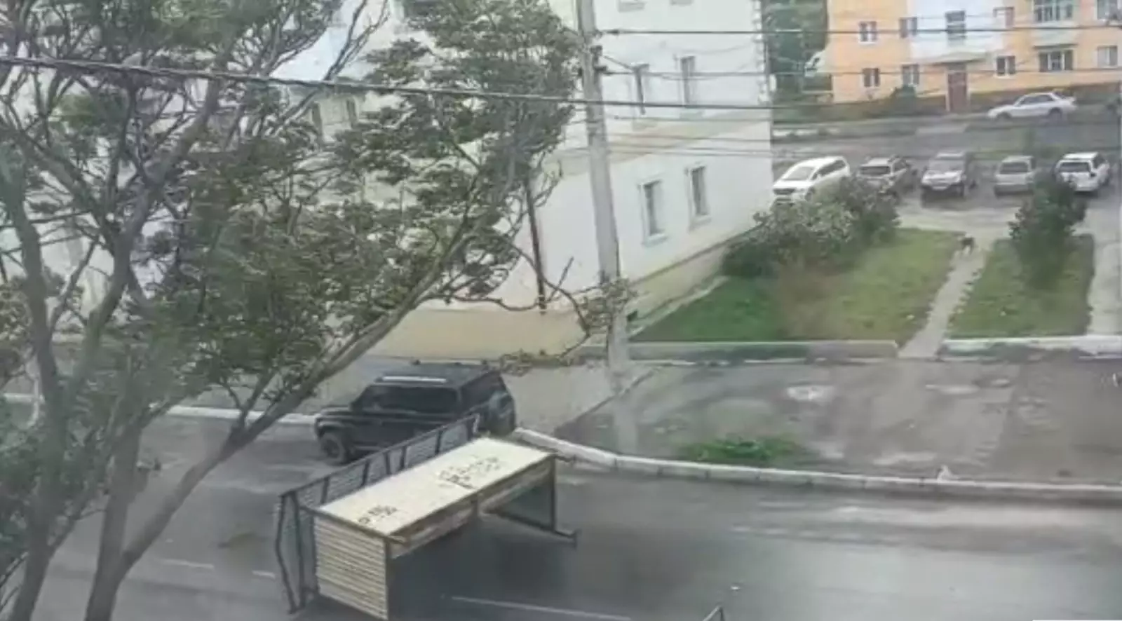 Унесённая тайфуном автобусная остановка на Сахалине попала на видео