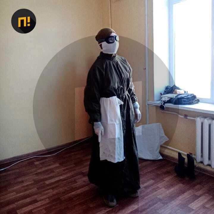Сказали „ничего страшного, костюмы многоразовые“. Их потом обрабатывают, стирают и дают опять надевать, санитаркам даже не дают респиратор, просто марлевые повязки, говорят, что этого достаточно. Правда, должны работать по два часа, выход три раза. У нас очки скотчем заклеенные. Они разных годов, от 1973, 1984и т. д. <...> На ногах мусорные пакеты, альтернатива — свои сапоги или армейские „сорок десятого“ размера, — рассказали изданию несколько сотрудников госпиталя.