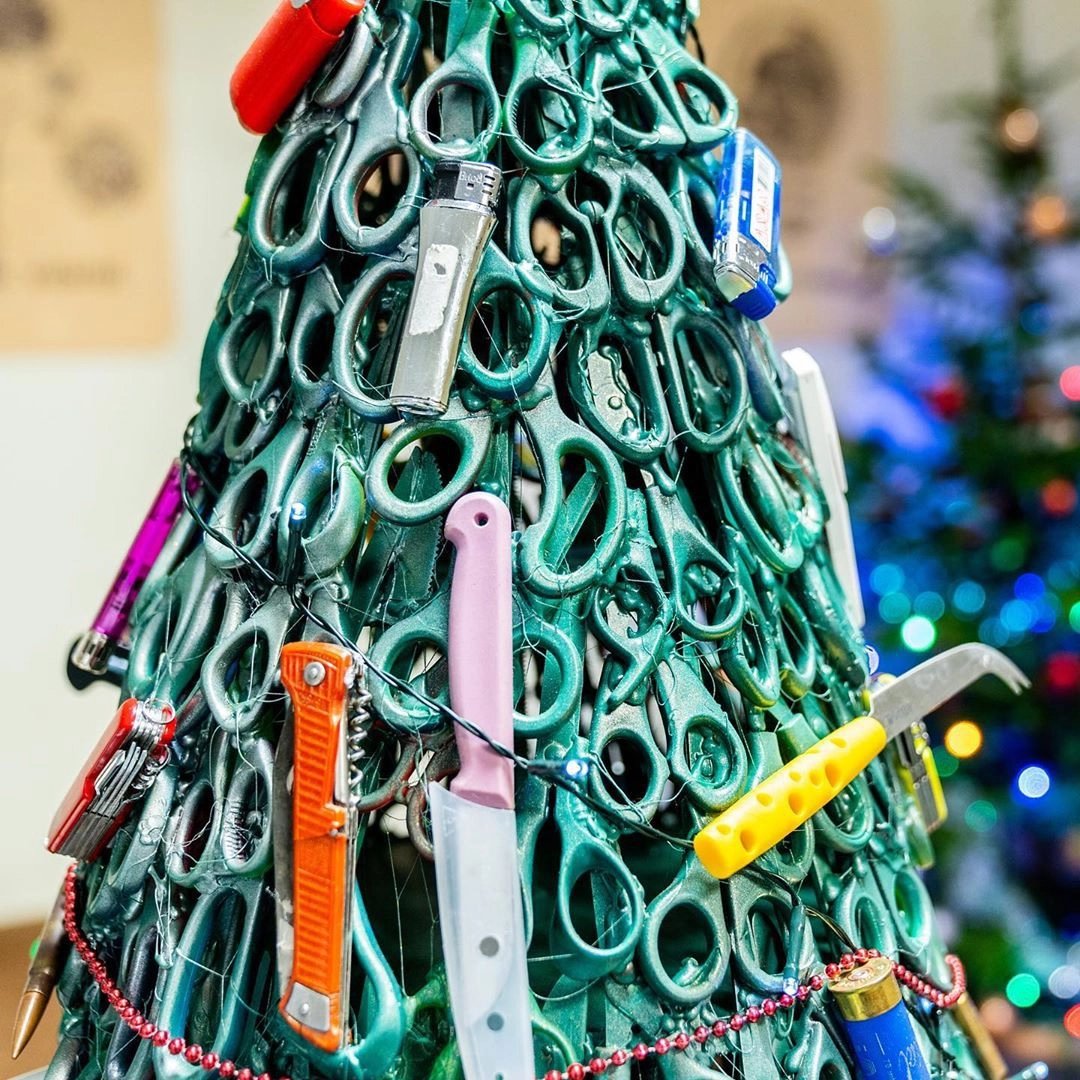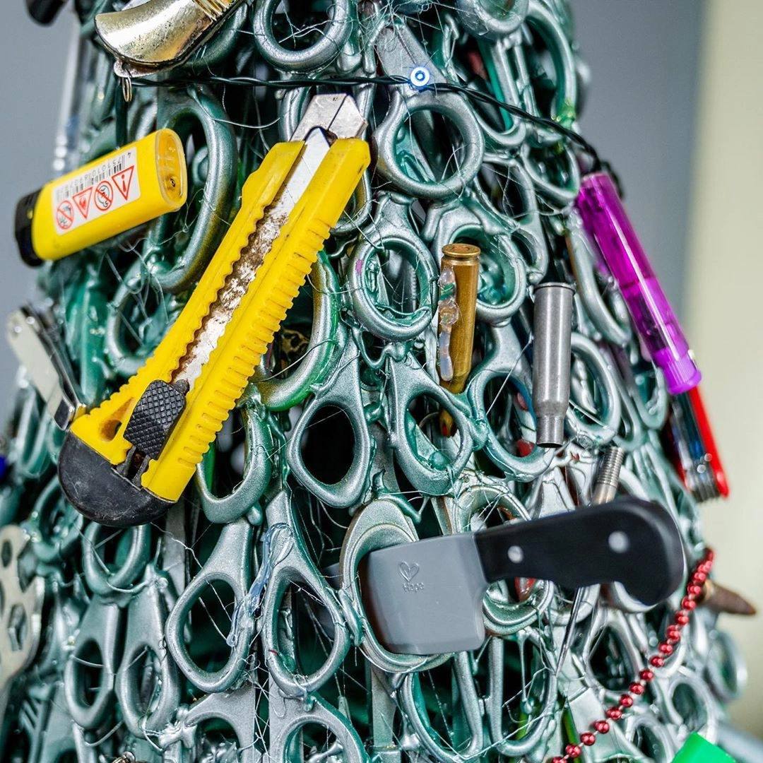 Уникальная елка из изъятых вещей напомнит пассажирам о требованиях к багажу