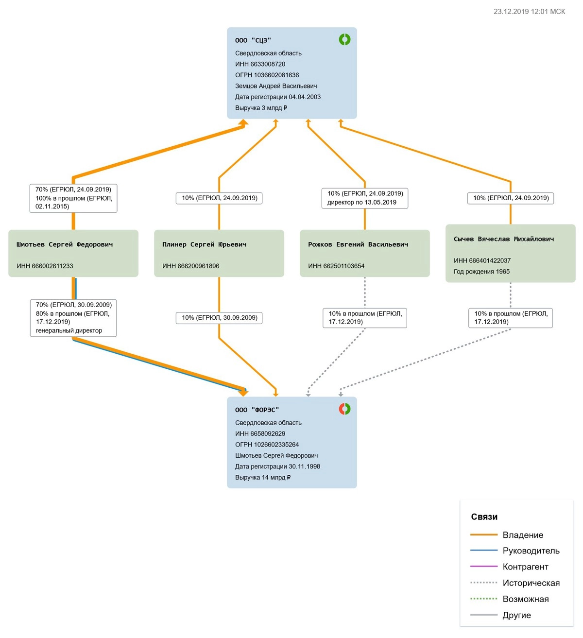 Основным владельцем ООО «СЦЗ», как и ГК «Форэс», является екатеринбургский бизнесмен Сергей Шмотьев.