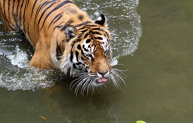 Смелая утка еще какое-то время продолжает дразнить тигра, после чего он сдается. Животное вылезает из пруда и уходит без добычи.