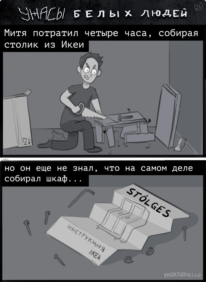 В этом материале мы хотели познакомить вас с другой серией работ парня под названием «Ужасы белых людей». «Ужасы белых людей» — это комиксы о проблемах, которые хоть и не сигнализируют о конце света, но способны довести до белого каления любого человека.