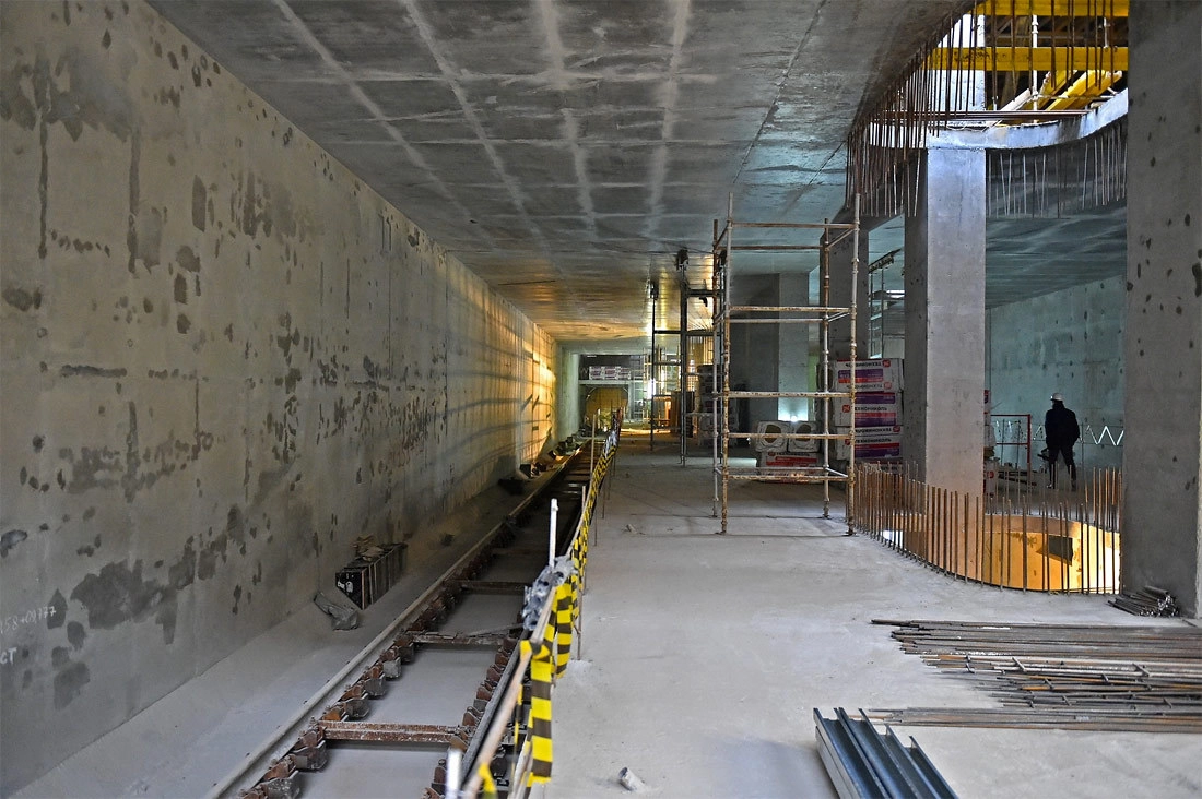 В 2014 и 2015 годах через будущее тело станции транзитом были пройдены оба перегонных тоннеля.