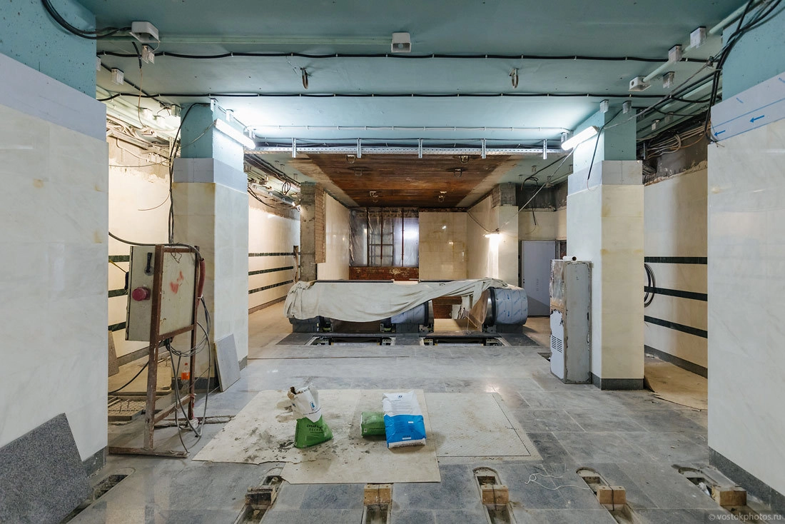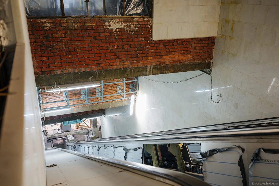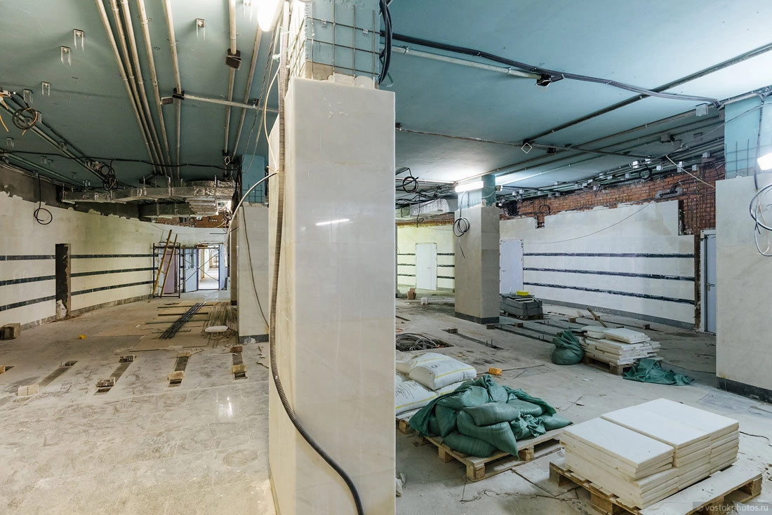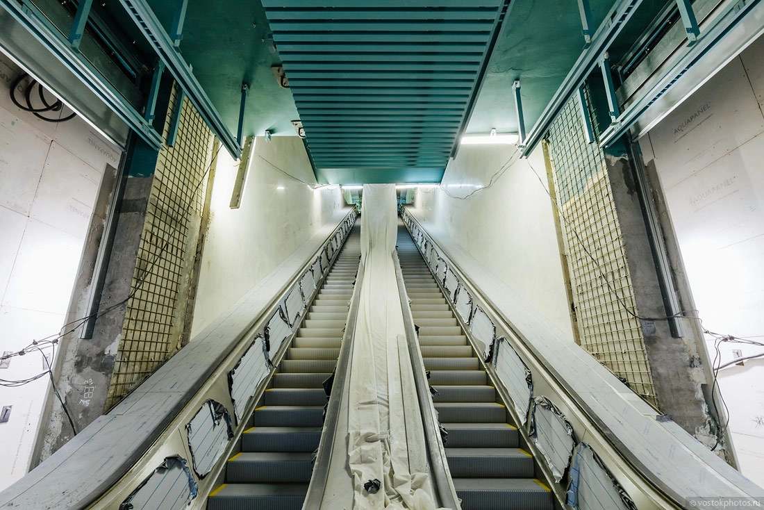 Из-за временных стен Беломорская больше похожа на подземный переход, нежели на станцию метро.