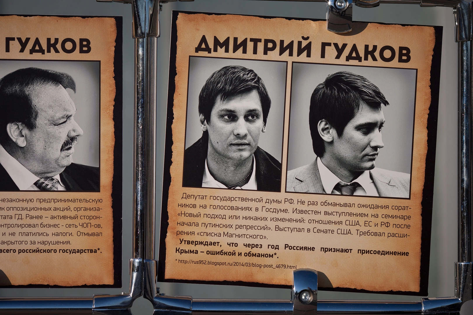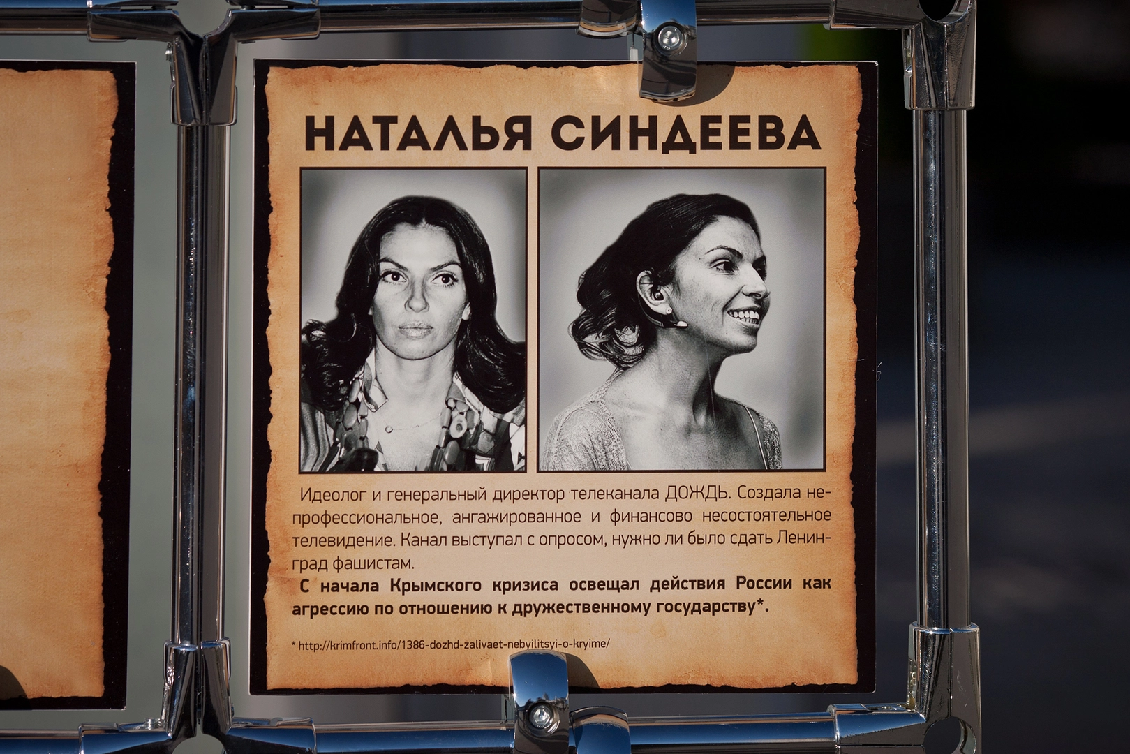 В крупнейших городах Крыма – Симферополе и Севастополе – замечены информационные табло с портретами «агентов западного влияния» или, пользуясь определением президента России Владимира Путина «национал-предателей».