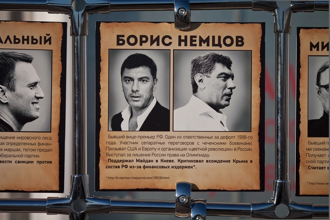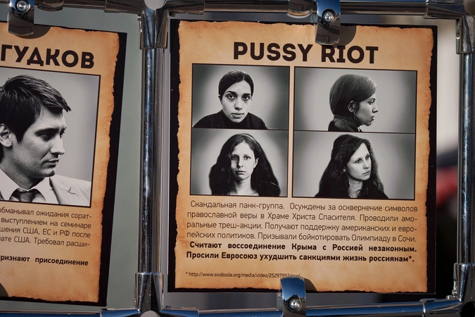 Когда появились табло и кто их установил доподлинно неизвестно. «Героями» баннеров а-ля «NOSCE INIMICVM TVVM» стали Михаил Касьянов, Владимир Рыжков, Алексей Навальный, Наталья Синдеева, Борис Немцов, Геннадий Гудков, Дмитрий Гудков, Pussy Riot, Андрей Макаревич, Илья Пономарев. Венчает композицию перечеркнутый запрещающим знаком портрет «дяди Сэма».