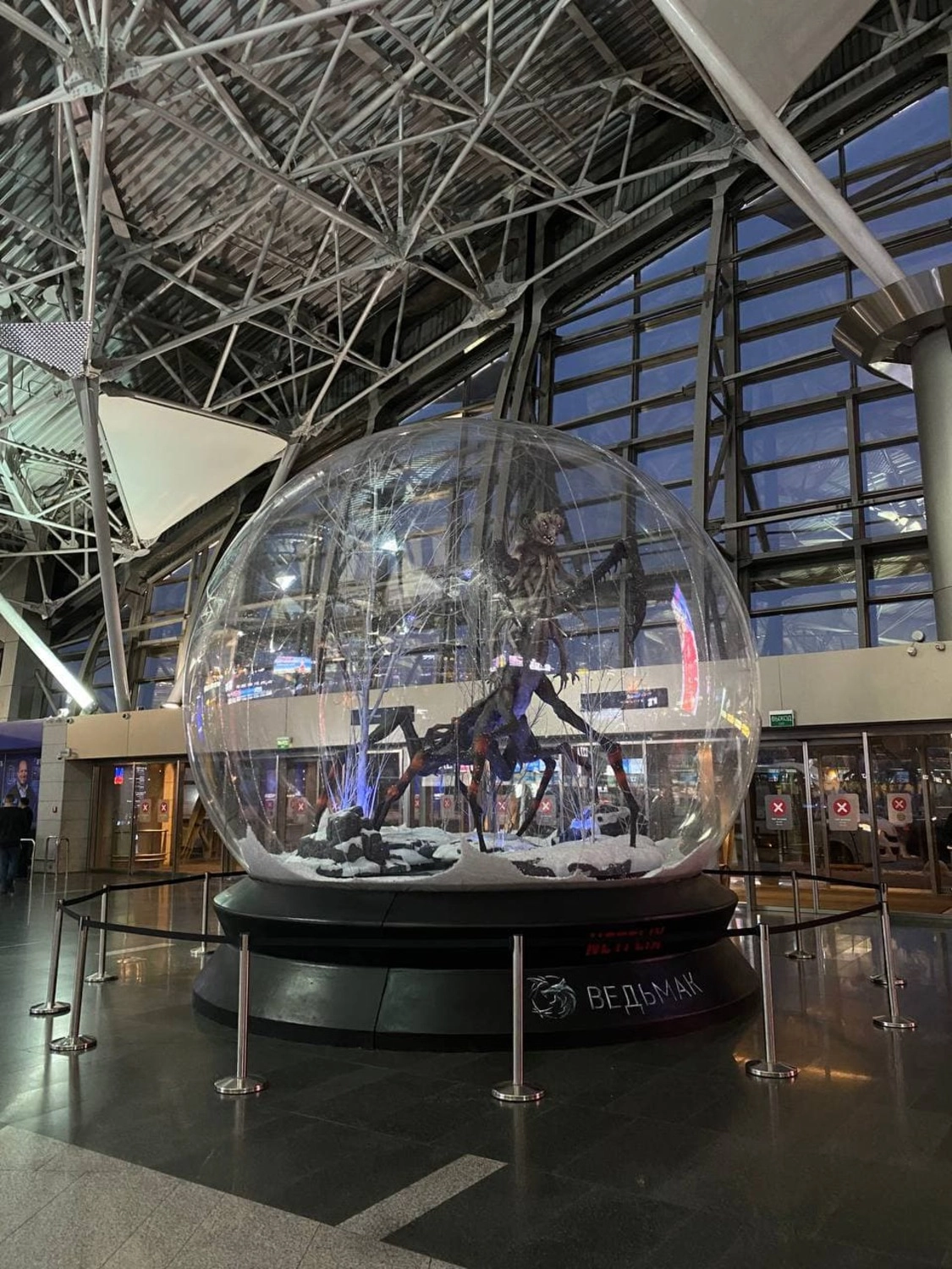 В преддверии премьеры на Netflix второго сезона сериала «Ведьмак» в столичном аэропорту Внуково соорудили огромный снежный шар, внутри которого установили Многоножку.