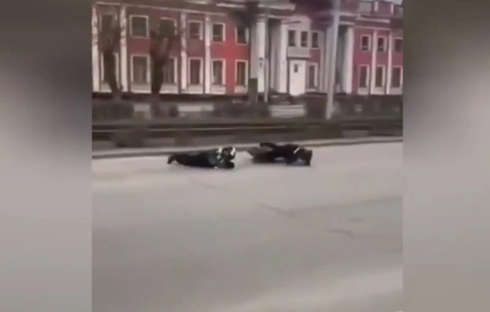 На кадрах видно, как мотоциклист предпринимает попытку скрыться, однако дорожный инспектор не отстаёт, догоняет его и удерживает мотоцикл за заднее крыло. В результате мотоциклист и сотрудник полицейского патруля оказываются на земле. Впоследствии нарушитель пытался бежать, но полицейским удалось задержать его.