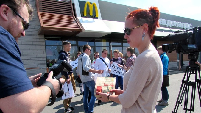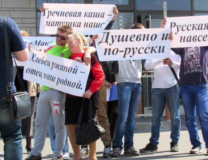В ходе акции протеста собравшиеся предлагали землякам «не ходить в „МакДак“», а взамен предлагали пирожки самодельные (вряд ли они, кстати, проходили проверку Роспотребнадзора — прим. «Ридус»).