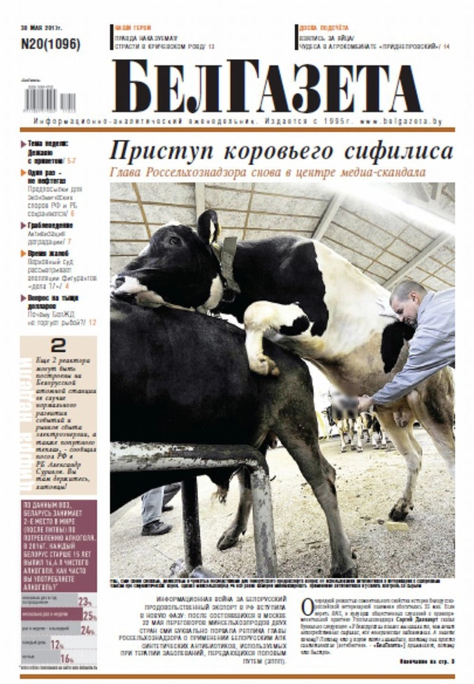Фотографии номера, попавшего под цензуру, появились в Сети. На странице под заголовком «Приступ коровьего сифилиса» помещена фотография быка-осеменителя и зоотехника за работой в самый пикантный момент. В статье идет речь о медиаскандале, в котором оказался глава Россельхознадзора Сергей Данкверт, о чем говорится в подзаголовке. Как уточняет агентство Sputnik, ранее чиновник заявил о наличии в белорусском молоке антибиотиков, в том числе тех, которыми лечат гонорею и сифилис.
