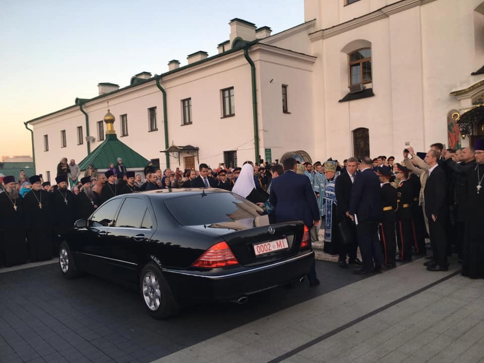 Шрамко обратил внимание на то, что патриарх подъехал к собору на «Мерседесе» с номером «0002». «Первым у нас положено быть только одному человеку», — написал священник, намекая на президента Белоруссии Александра Лукашенко.