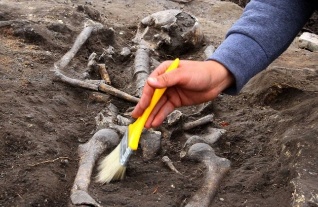 Исследуя средневековые захоронения, среди прочих могил профессор Овчаров наткнулся на аномальное захоронение: закопанный в могилу человеческий скелет (судя по фото, с некоторыми отклонениями в строении черепа) был проткнут колом, у тела отделены части ног.