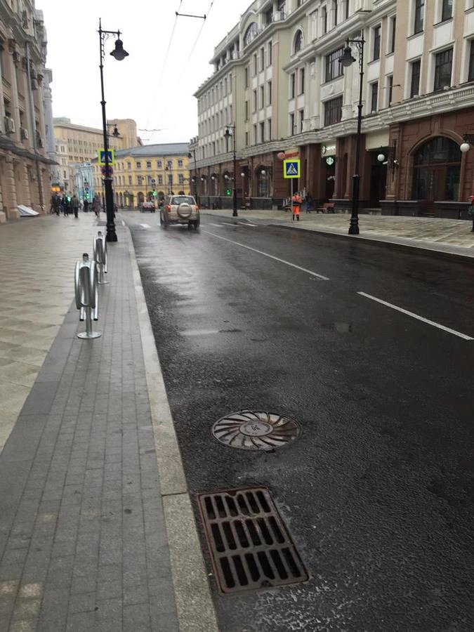 Более того, та самая ливневая канализация, которая, по бесхитростной версии блогеров, была нагло украдена командой столичного градоначальника, на Мясницкой вполне себе представлена системой ливнестоков, не заметить которые невозможно: