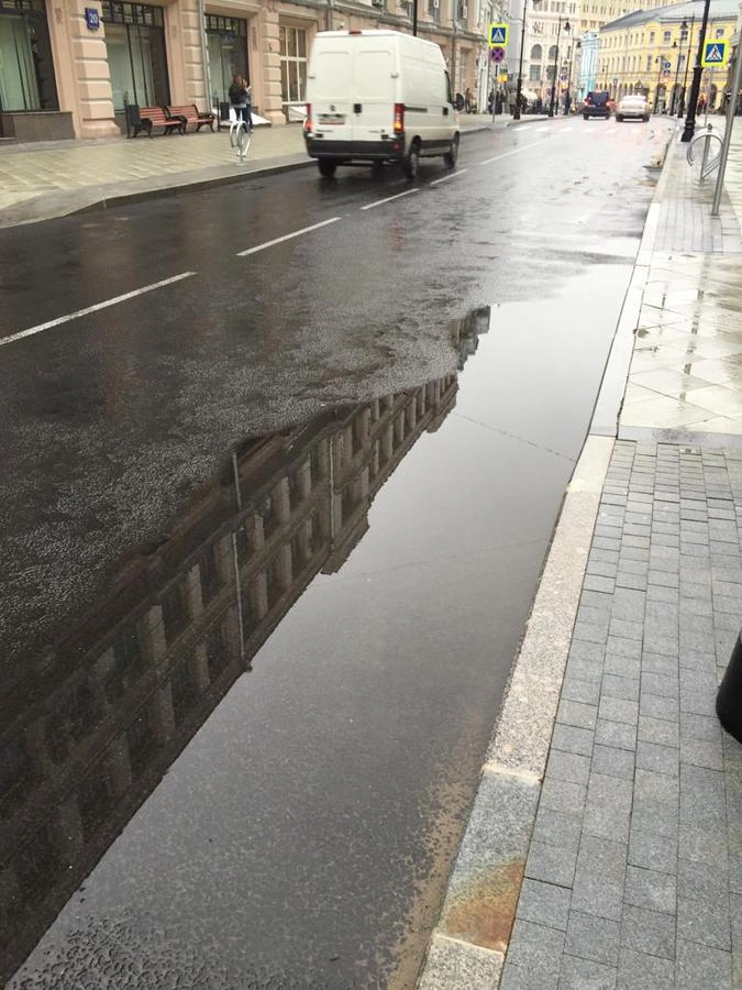 Стоит ли упоминать, что все эти мнения старательно «ретвитил» Алексей Навальный? В то же время москвичи, глядящие во время прогулки под ноги, а не в экраны смартфонов, никакого «потопа» на Мясницкой не обнаружили: