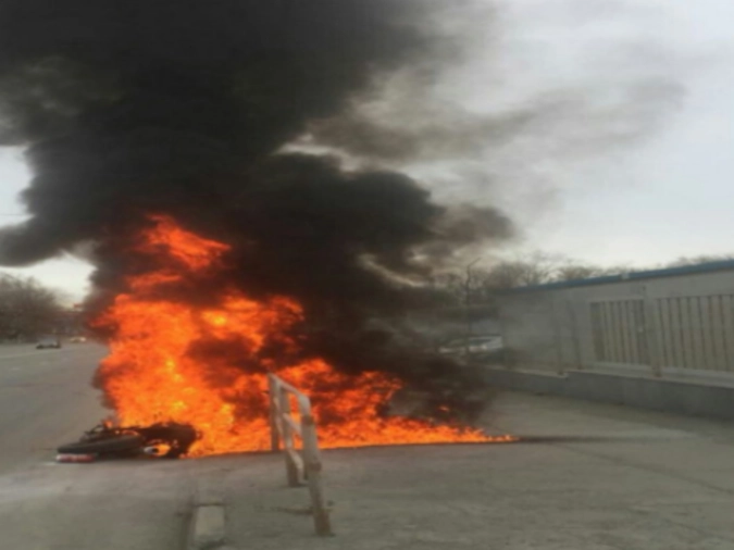 Местные жители предположили, что мотоциклист неудачно развернулся на перекрестке и бензобак ударился об асфальт, после чего вспыхнул огонь.