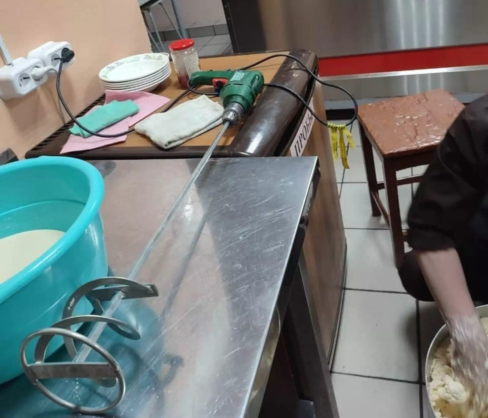 Прокуратура Чукотского района начала проверку после того, как в интернете появились фотографии кухни в столовой сельской школы. На кадрах видно, как сотрудник что-то мешает на полу в тазу голыми руками, а на столе лежит дрель с насадкой для строительного миксера.