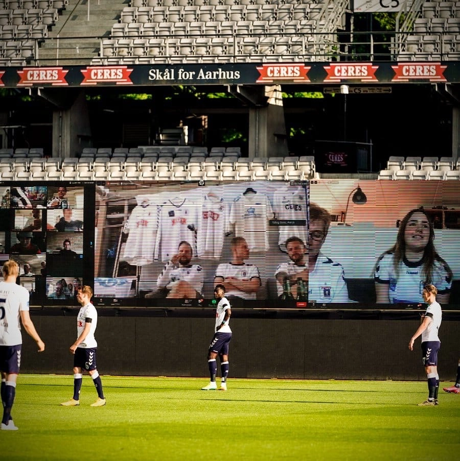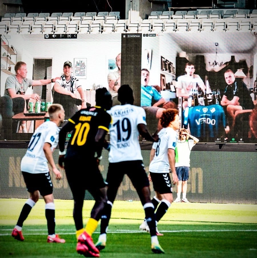 Руководство «Орхуса» вышло из положения — на домашнем стадионе команды установили несколько огромных экранов. Таким образом футболисты видели своих зрителей через приложение Zoom. Интересен тот факт, что виртуальные билеты на виртуальные трибуны были бесплатными, а зрители наблюдали игру из своих квартир, офисов или на природе.