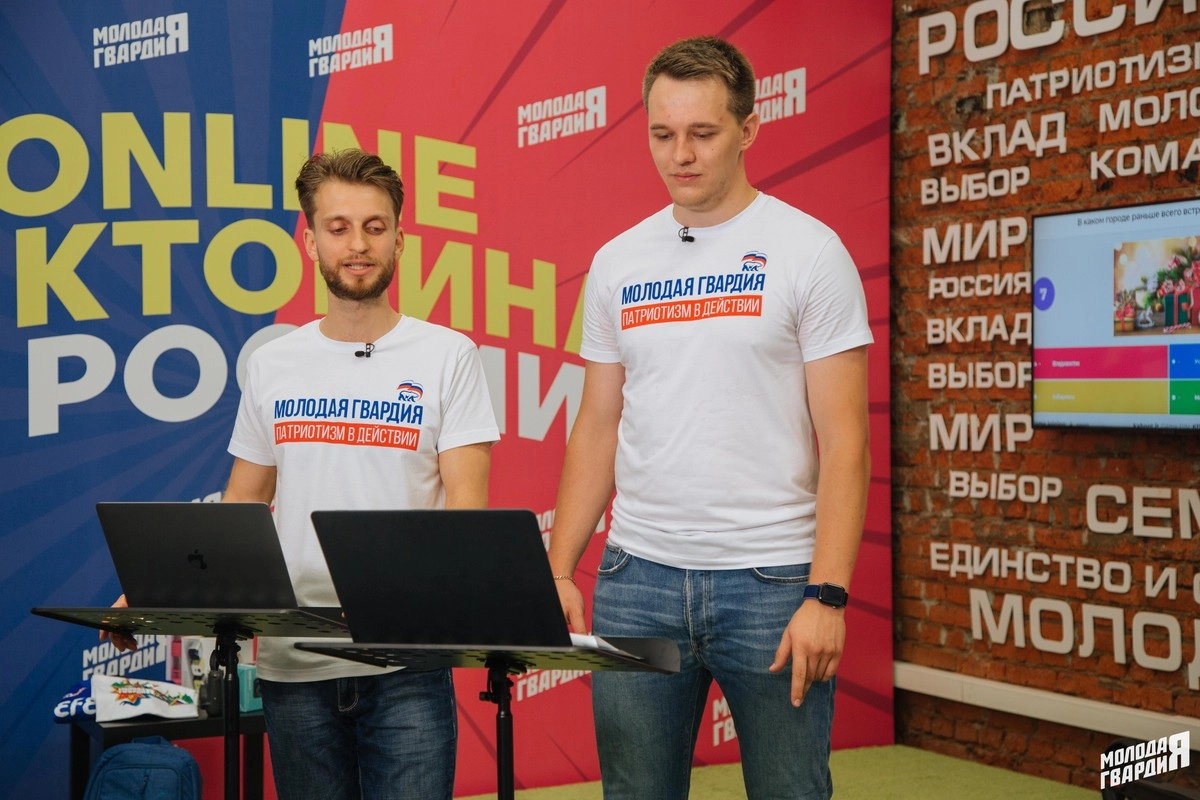 Так, в центральном штабе МГЕР прошла четырехчасовая интернет-викторина «О России». Ведущие задавали вопросы о нашей стране, а шесть тысяч участников отвечали на них у себя на мобильных устройствах через специальную платформу «Кахут».