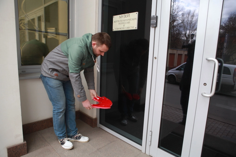 Охрана решила, что музею все же не быть: табличку оторвали, а красные тапочки разметали, а затем отправили в мусорную корзину. Не любят, наверное, политзеков.