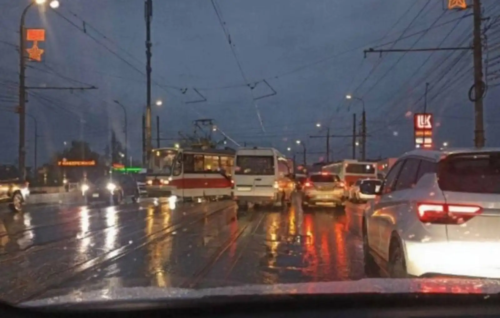 На Пролетарском мосту в Туле произошло дорожно-транспортное происшествие с участием трамвая, двух маршрутных такси и легкового автомобиля.