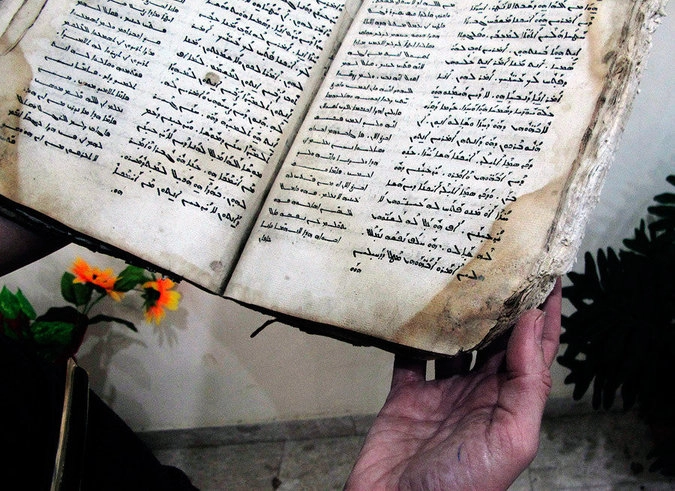 Учитель школы в деревне Джиш держит Евангелие от Луки, написанное на арамейском. © Diaa Hadid/AP Photo
