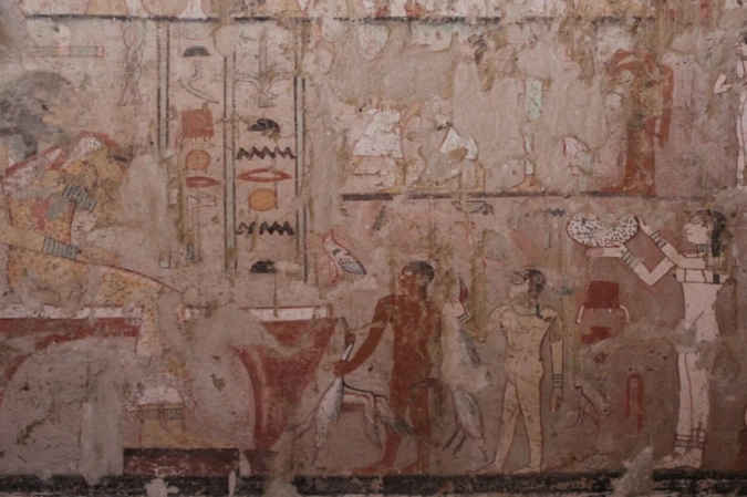 У гробницы очень характерные настенные росписи в хорошей сохранности. Они изображают саму Хетпет, разные сцены охоты и рыбалки, женщину, сидящую перед большим столом с подарками от своих детей, говорится в заявлении Министерства по делам памятников древности Египта.