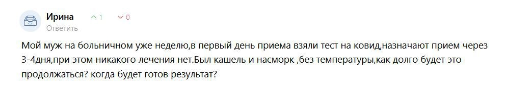 Когда пришло время продлить больничный, Дмитрий вновь пришел на прием. В поликлинике № 1 ЦГКБ № 7 была создана общая очередь в регистратуру и непосредственно к врачу. Результаты ПЦР-теста до сих пор не были готовы, и участковый врач предложила мужчине опять прийти на прием через несколько дней, чтобы снова продлить больничный лист.