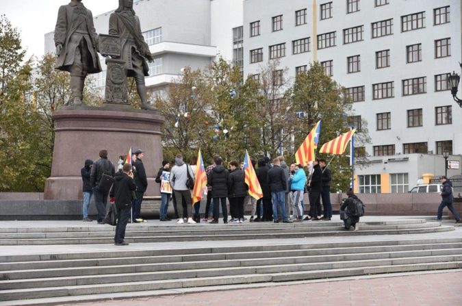 В Екатеринбурге состоялся пикет в поддержку независимости Каталонии. Акция прошла у памятника основателям города и собрала 20 человек.