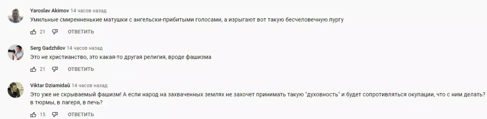 Екатеринбургская епархия опубликовала видеозапись с выступлением Алены Богдановой на своем официальном YouTube-канале. В комментариях зрители ответили на ее экспансионистскую речь резкими отповедями.