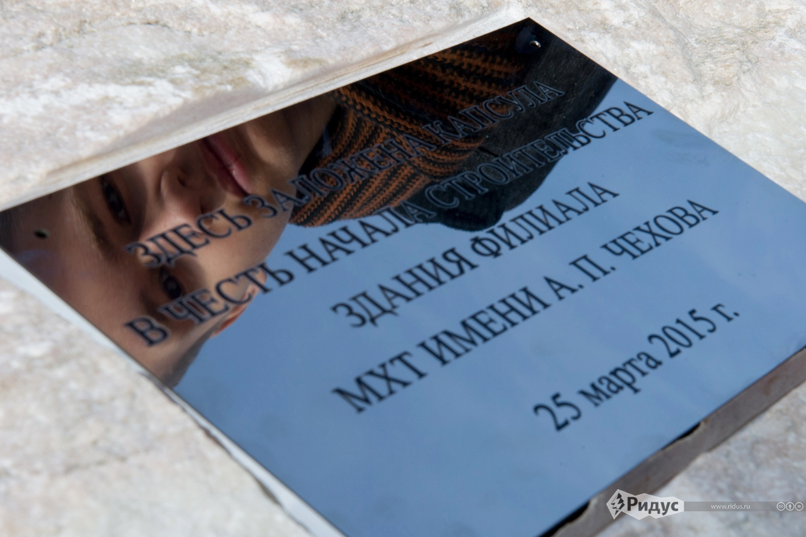 На церемонии закладки капсулы молодые артисты МХТ им. Чехова специально для этого момента подготовили литературную композицию по произведениям Чехова. После чего художественный руководитель театра Олег Табаков зачитал послание потомкам: