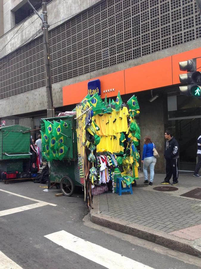 Время от времени попадались заваленные атрибутикой чемпионата и бразильской сборной ларьки.