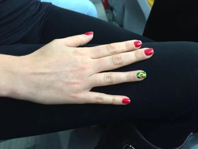 И, конечно, символику Бразилии можно было увидеть практически на каждом - кто-то гипс раскрасил желто-зелёными цветами, а кто-то нанёс патриотичный маникюр.