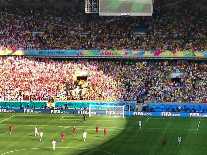 На стадионе было повеселее, чем в Порту-Алегри, где-то 70% аудитории составляли бразильцы, для которых, наверное, каждый футбольный матч – праздник, они пели и радовались игре, ставшей одной из самых скучных на турнире. Обратил внимание на то, что диктор по стадиону даже не объявлял замены и прочие изменения – подобного на других чемпионатах мира не встречал.