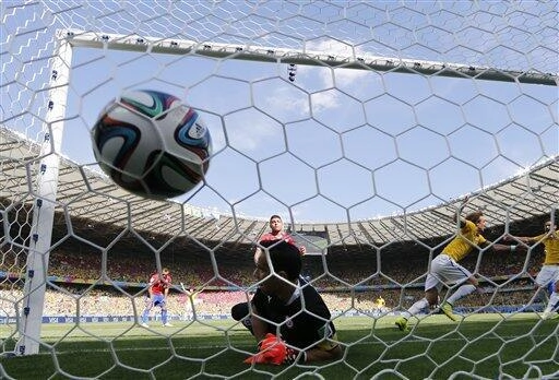 Первый гол Чемпионата мира забили бразильцы, но... в свои ворота. После прострела с фланга неувядающего Олича мяч в сетку срезал Марсело.