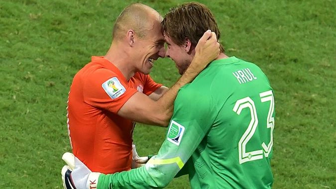Фолы, офсайды, множество стандантов - никто не хотел уступать, но и на риск соперники не шли. Дополнительные два тайма по 15 минут показались чуть ли не веселее, чем основное время, но и в этих отрезках последние удары форвардов не стали решающими. В итоге - серия пенальти, в которой, в отличие от четвертьфинала с Коста-Рикой, ворота голландцев остался защищать отстоявший все 120 минут Силессен. Вот только ни одного удара соперников ему отбить не удалось, в отличие от Ромеро, который сделал два сейва.