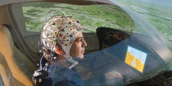 Это разработка Берлинского и Мюнхенского технического университетов, финансируемая Евросоюзом. Она представляет собой прибор, подключаемый электродами к голове пилота.