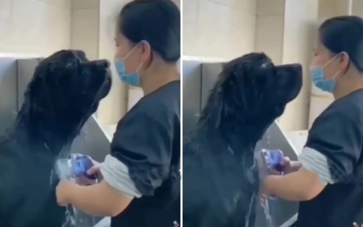 «В глаза мне смотри»: пес устроил грумеру игру — кто кого переглядит