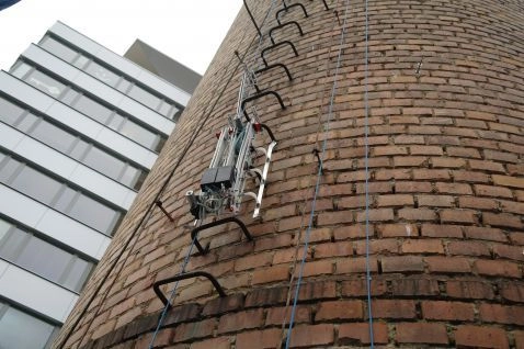 Наш робот сам залезает на трубу и сам оттуда слезает. Человек может приехать на место контроля, повесить его на ступень и включить работу в автономном режиме, чтобы робот прошел определенное количество ступеней, сделал замеры и вернулся.