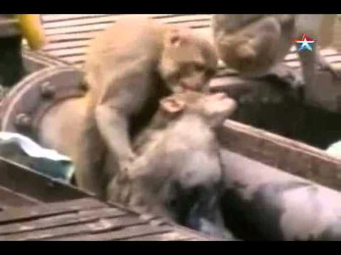 В Индии обезьяна спасла друга, упавшего на рельсы