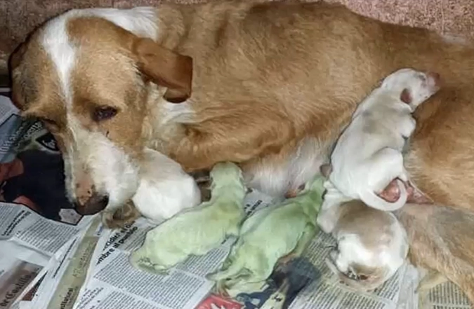 В Испании сука лабрадора родила зеленых щенков. Видео